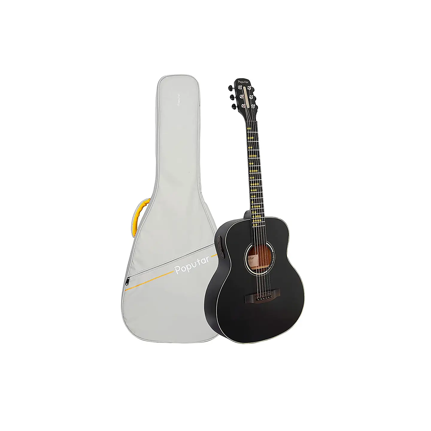 - Power Supply: Just two regular AA batteries power it for up to 10 hours of continuous playing in full-light mode. Features a resettable power button. Battery status is displayed via the Poputar logo light on the fretboard!